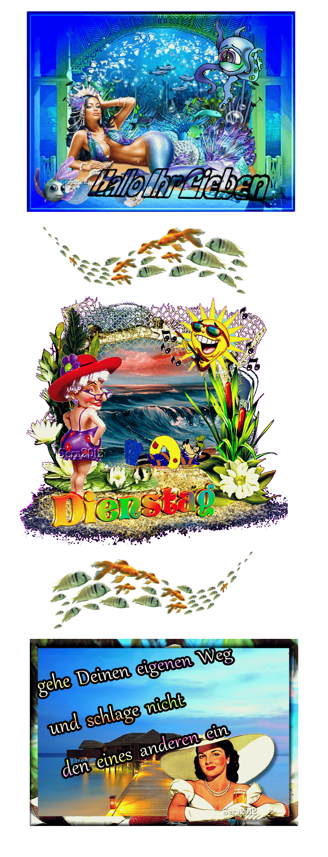 DIENSTAG COLLAGE OMI STRAND und HALLO und BILDtext
