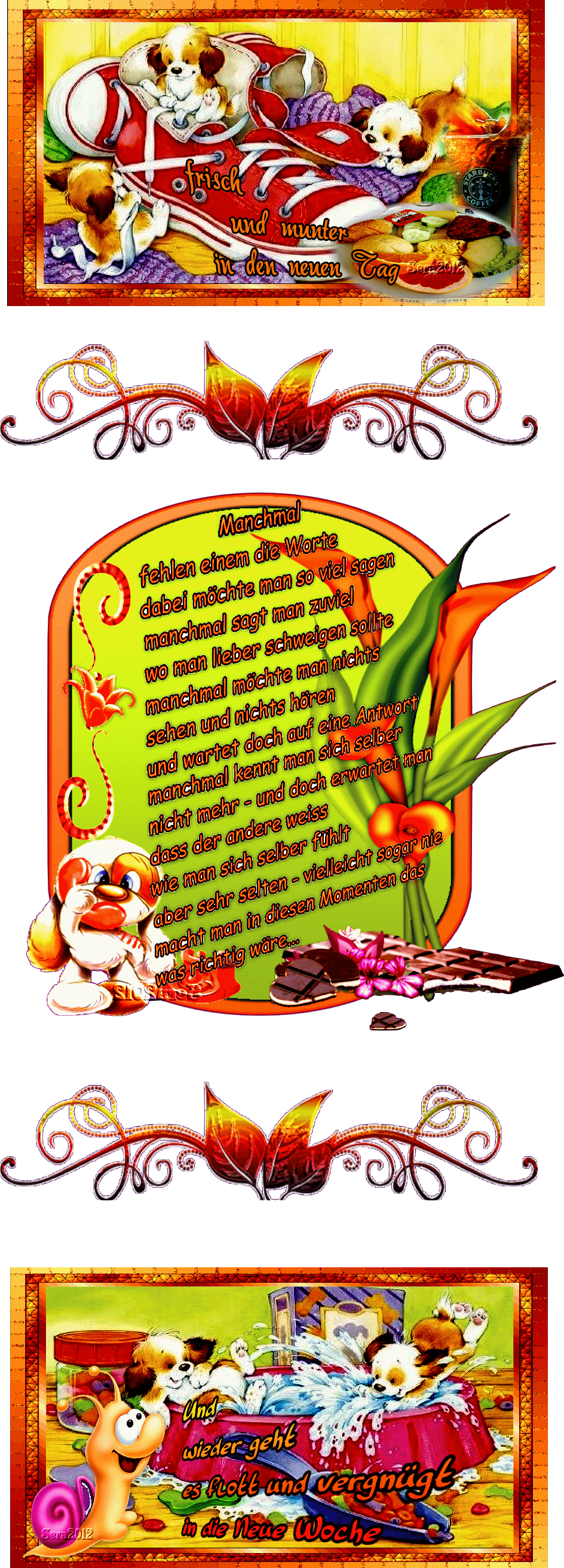 COLLAGE DOGGIES FLOTT UND VERGNUEGT und BILDtexte