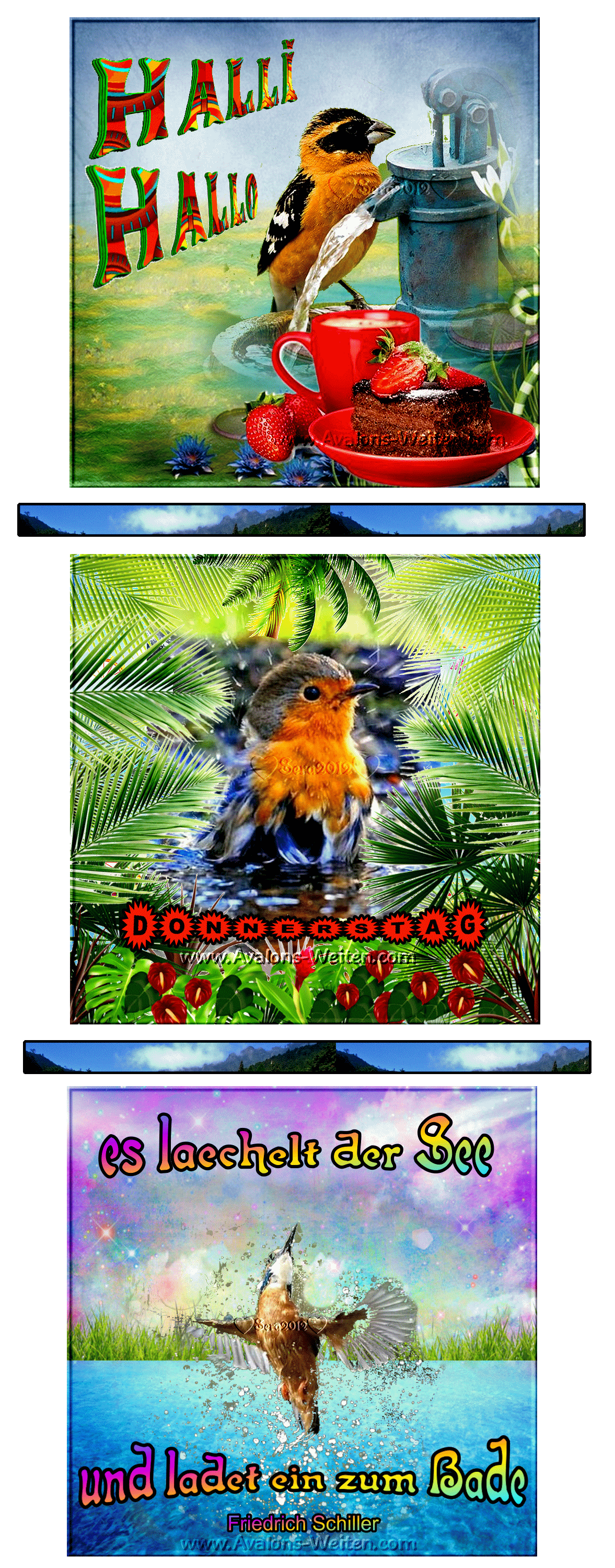 DONNERSTAG COLLAGE BIRD und HALLO und BILDtext