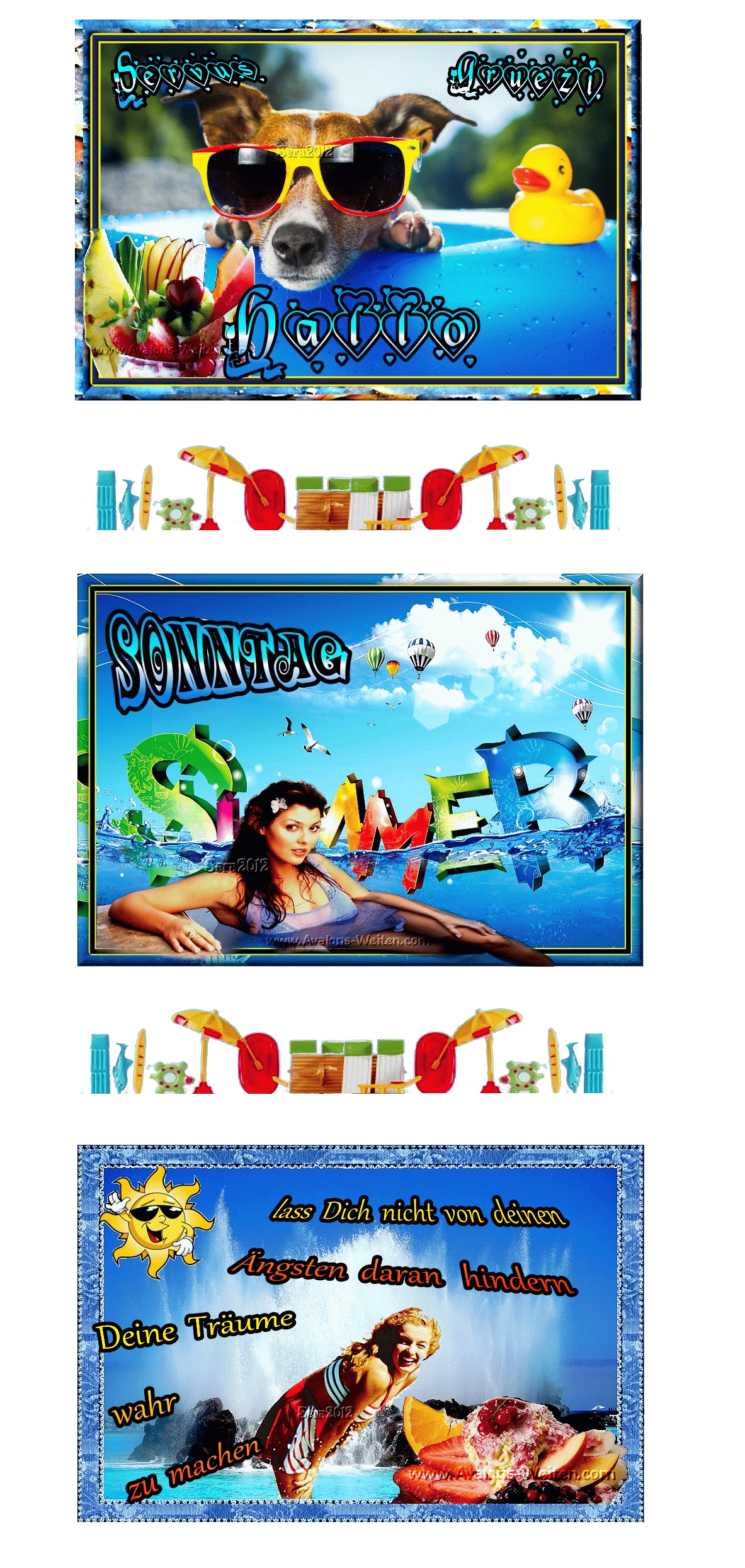 SONNTAG COLLAGE FRAU BADEANZUG und HALLO und BILDtext