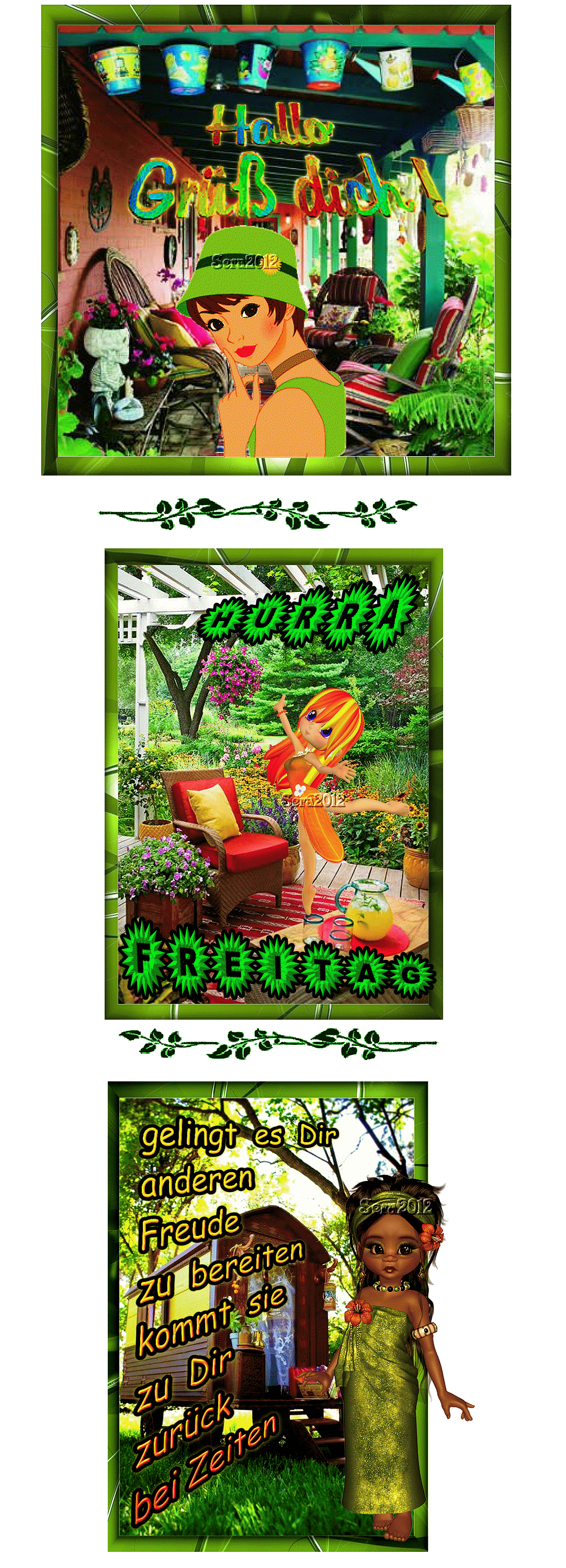 FREITAG COLLAGE ANIME GARTEN und HALLO und BILDtext