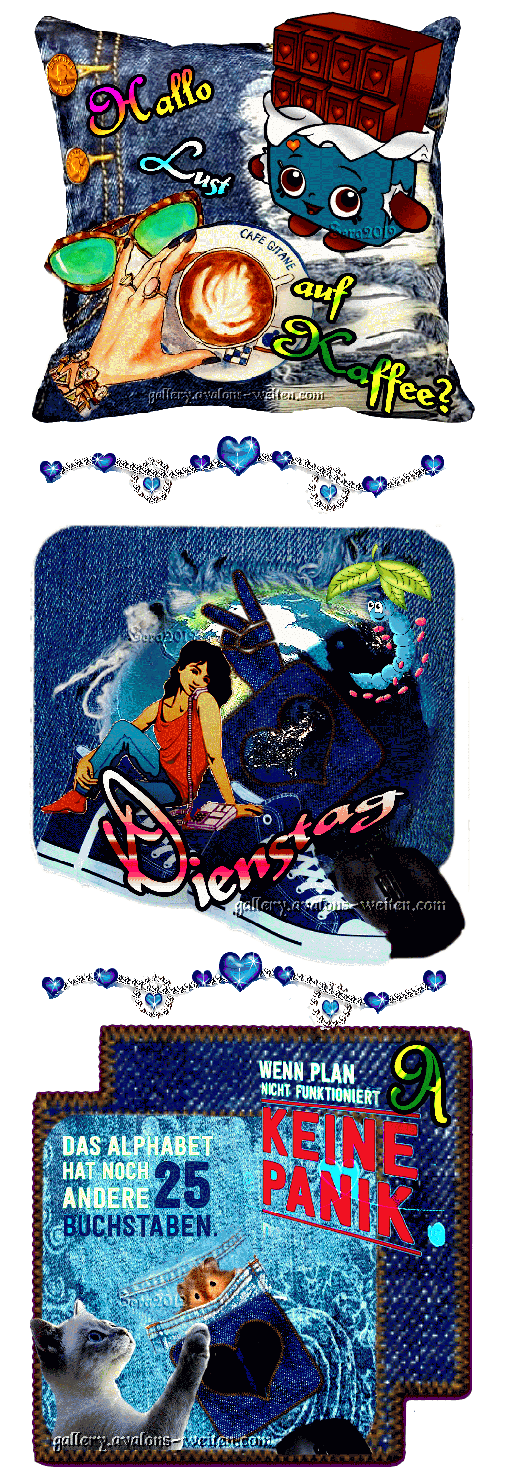 DIENSTAG COLLAGE JEANS ART und HALLO und BILDtext