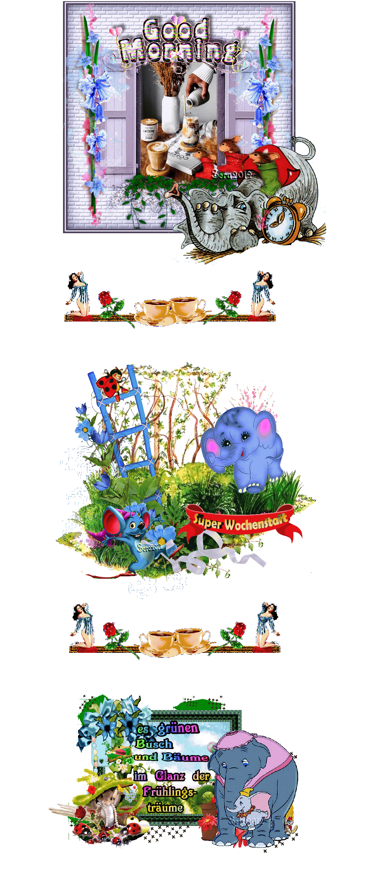 COLLAGE ANIMALS GARTEN und GUMO und BILDtext