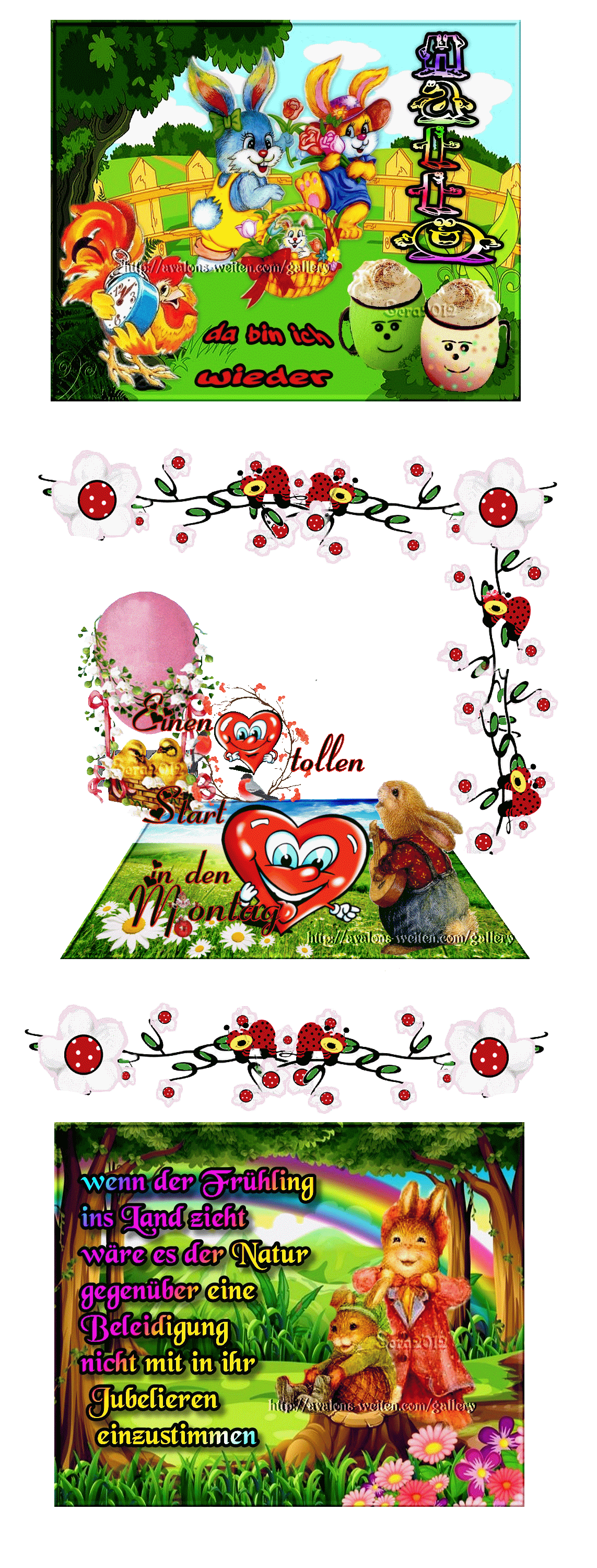 COLLAGE BUNNY CHICKENS und HALLO und BILDtext