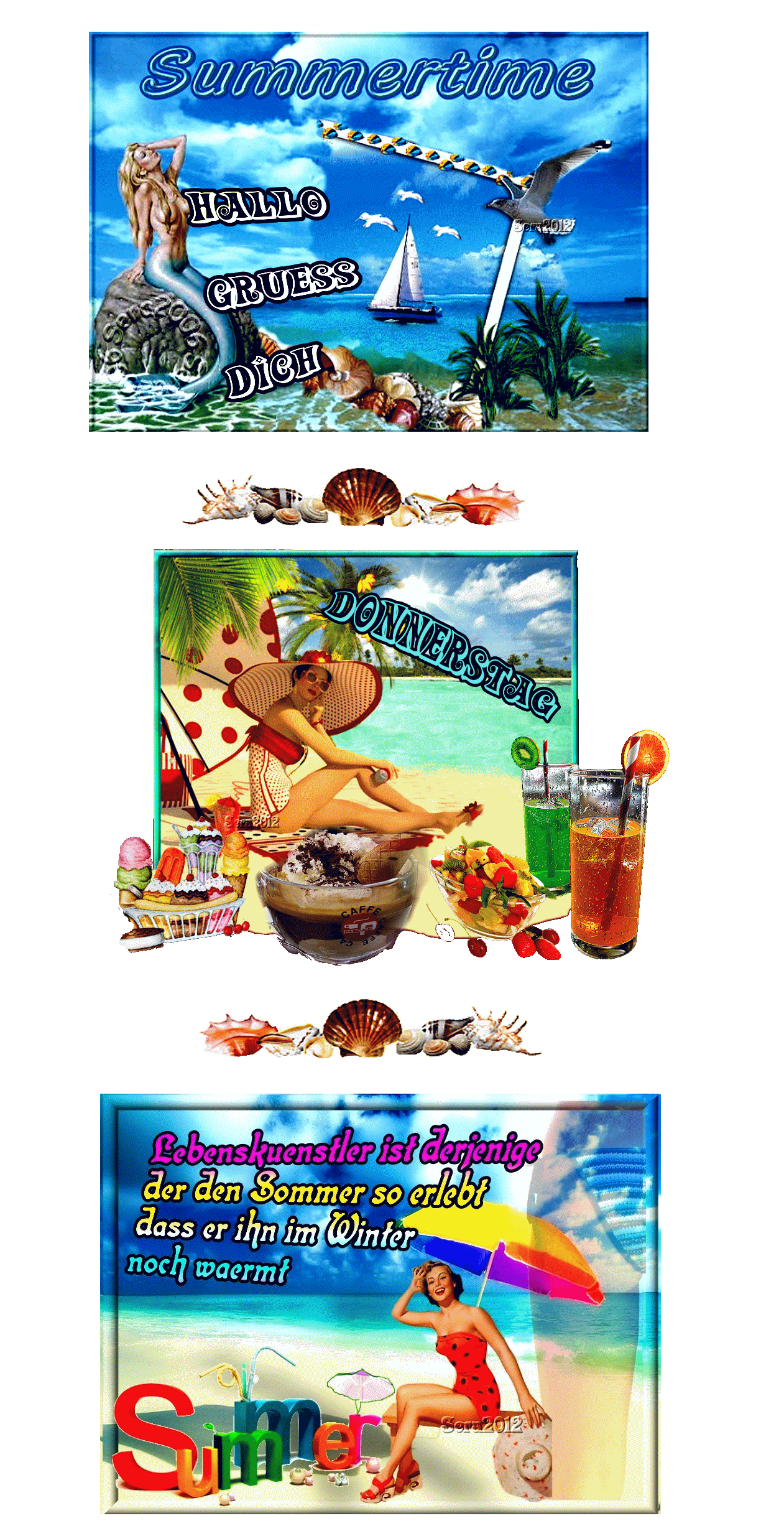 DONNERSTAG AM STRAND COLLAGE und HALLO und BILDtext