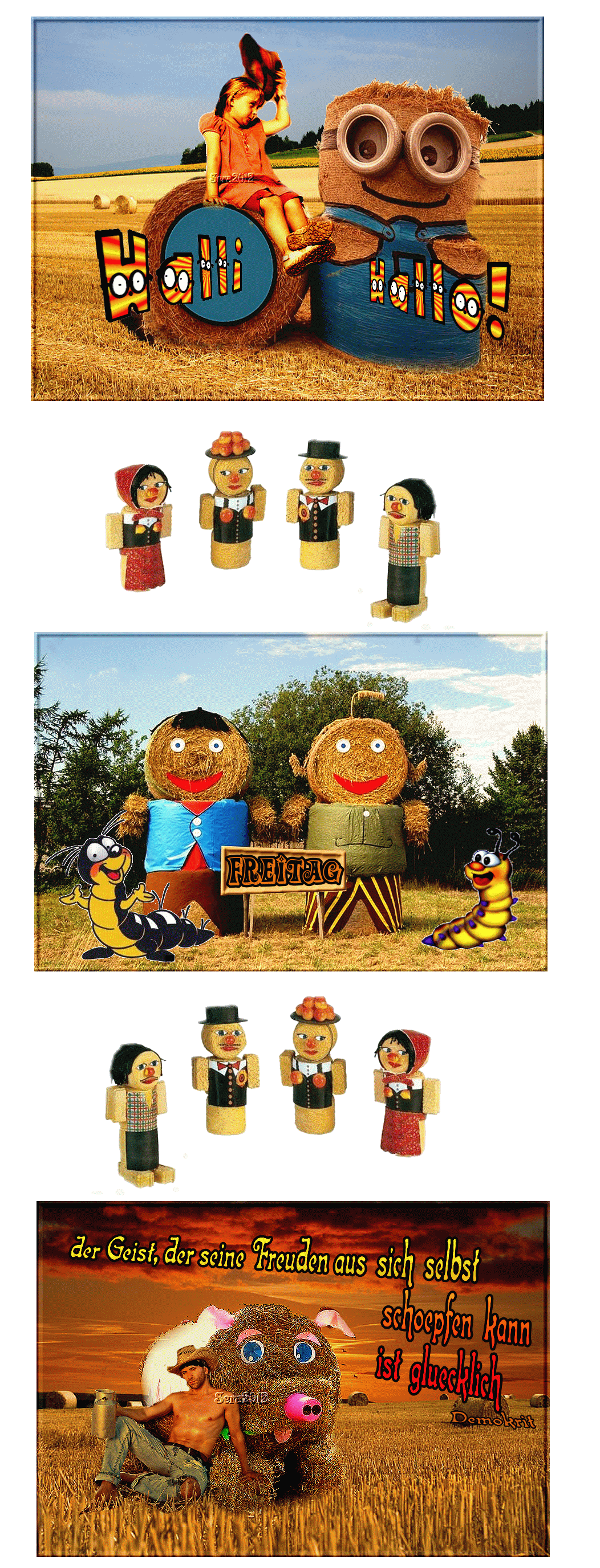 FREITAG COLLAGE STROHBALLEN PAAR und HALLO und BILDtext