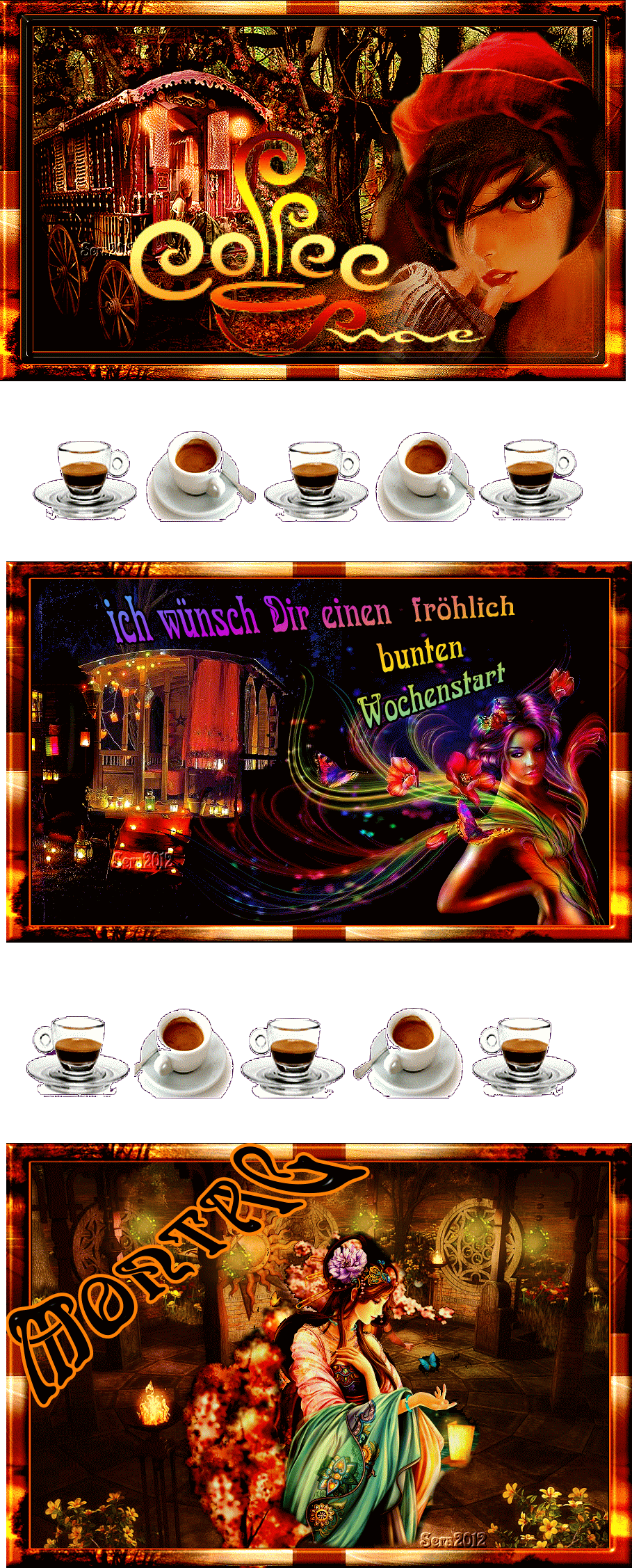 COLLAGE ZIGEUNERWAGEN und KAFFEE und MON