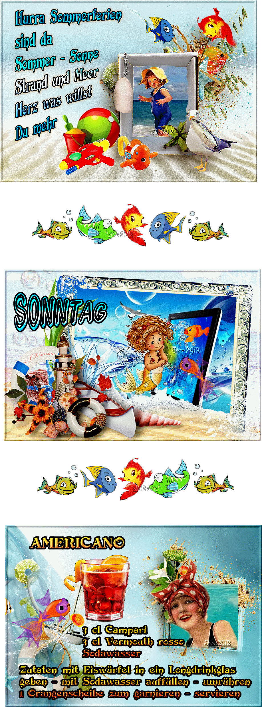 SONNTAG COLLAGE MEERMAID BABY MARITIM und COCKTAIL und BILDtext
