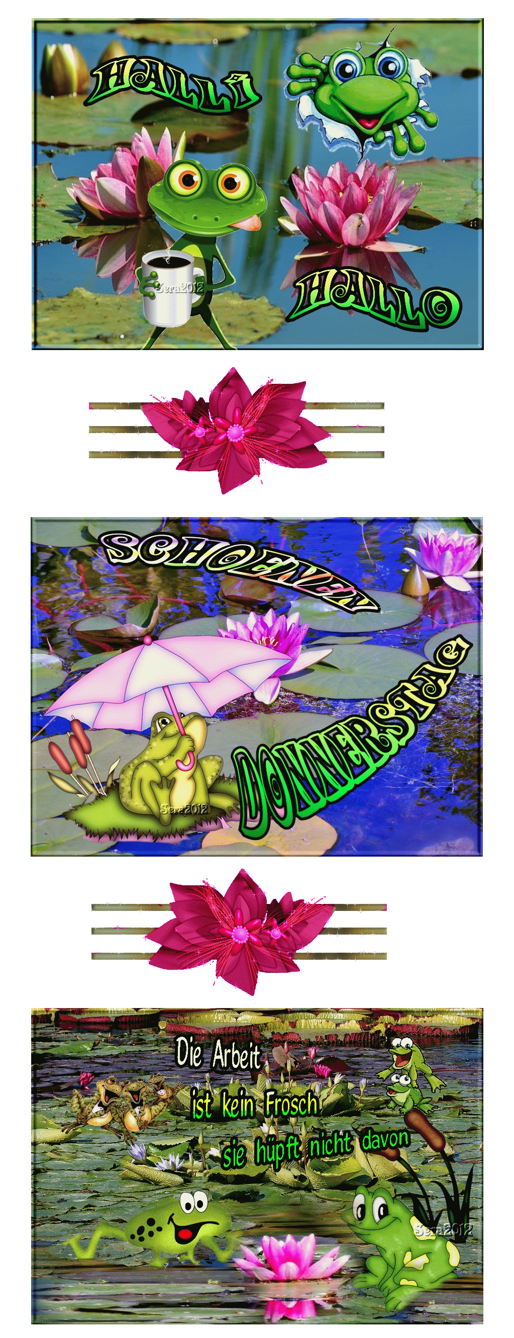 DONNERSTAG FROSCH SEEROSENTEICH SCHIRM und HALLO und BILDtext