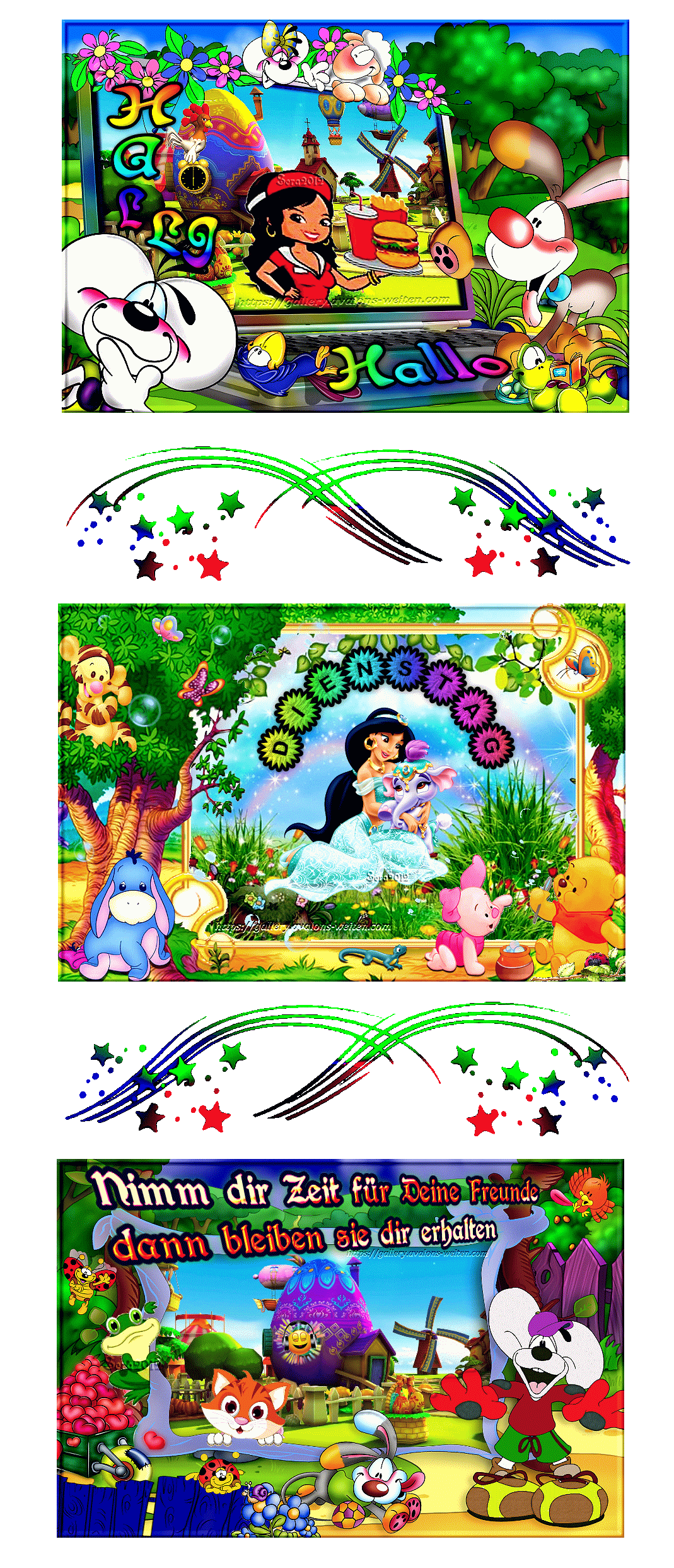 DIENSTAG AUF WIESE DISNEY COLLAGE und HALLO und BILDtext