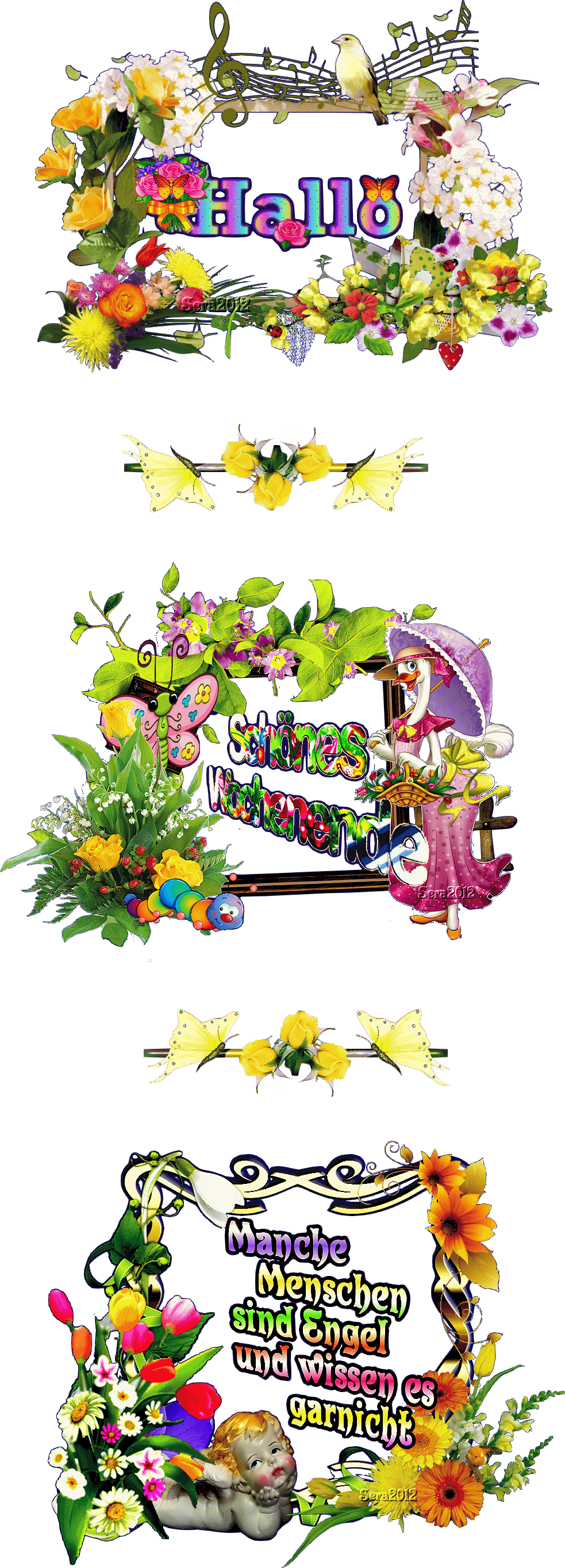 COLLAGE BLUMIG GANS und HALLO und BILDtext