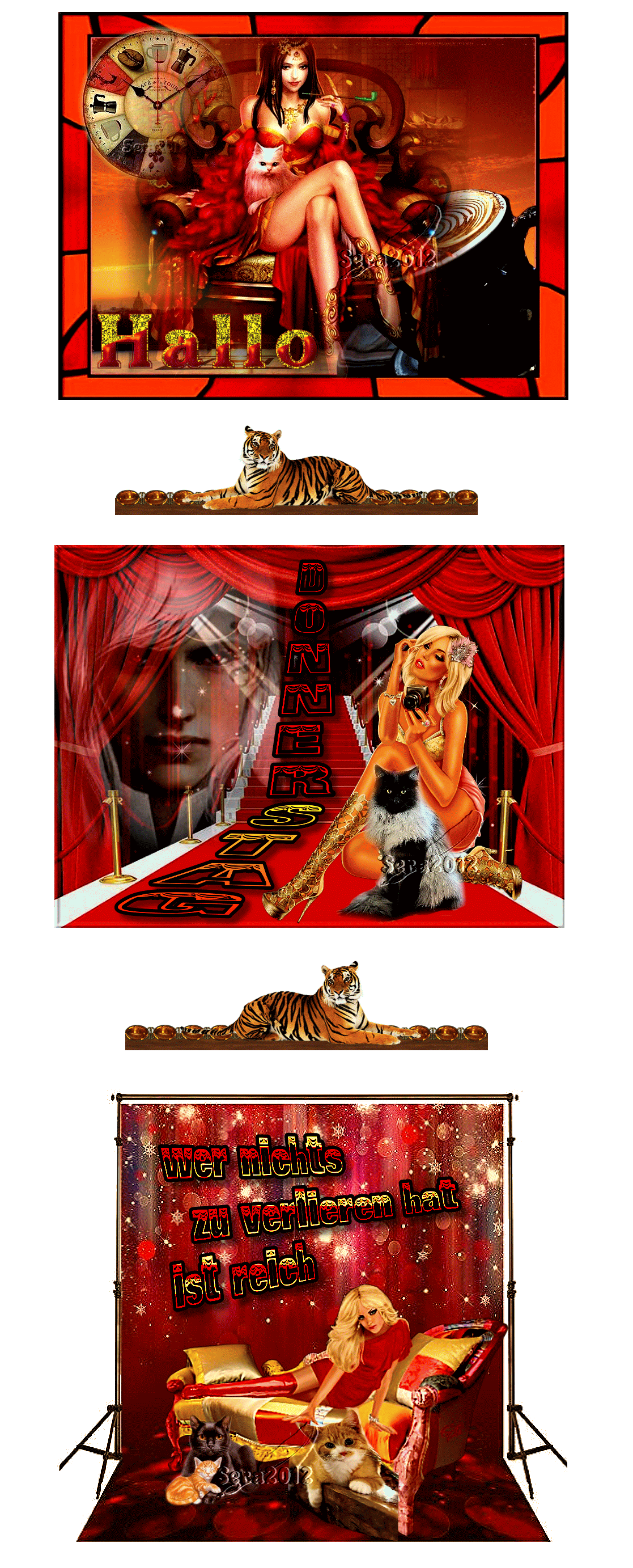 DONNERSTAG COLLAGE CAT FRAU und HALLO und BILDtext