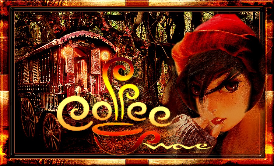 COLLAGE ZIGEUNERWAGEN WALD KAFFEE