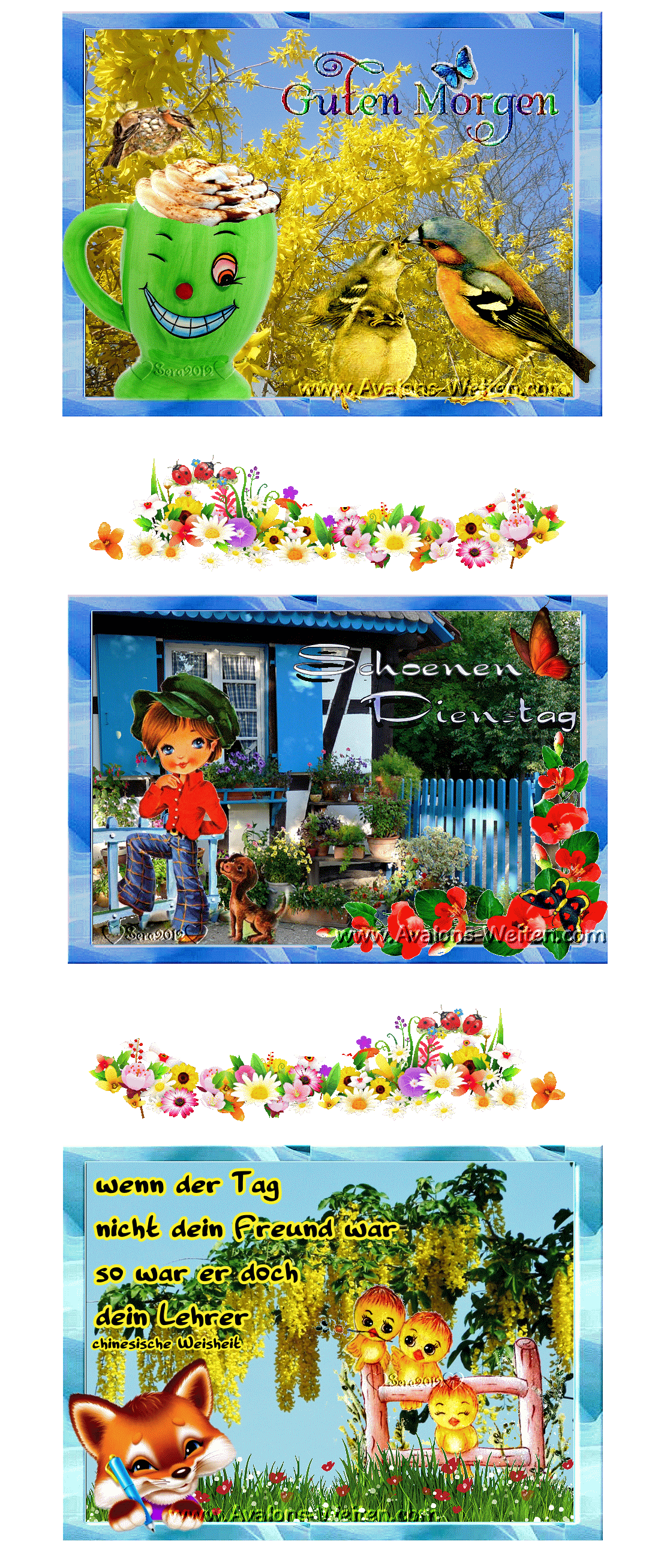 DIENSTAG COLLAGE BLUMEN SMILEY und HALLO und BILDtext